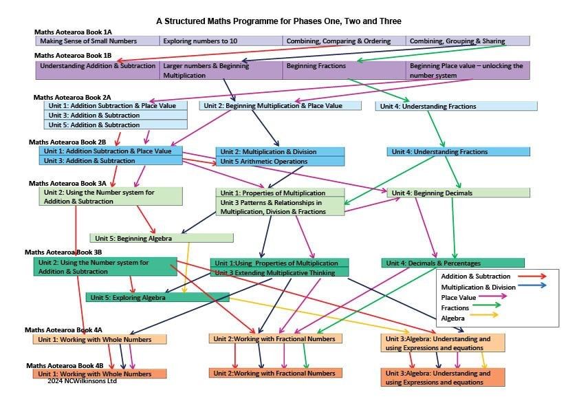 A series of textbooks and teacher guides that provides teachers with consistency and continuity in delivering a comprehensive mathematics programme from level 1 to level 4. (Phases 1 - 3). The books are designed in units of work as set out in the teacher guides that build up through and across each level or phase. Maths Aotearoa makes the links to the learning progressions as well as to the curriculum document. This allows for planning to meet the learning needs of each student in each unit.